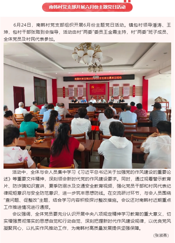 【黨建】南韓村黨支部、黃驊三陽黨支部、鵬峰化工黨支部分別開展六月份主題黨日活動