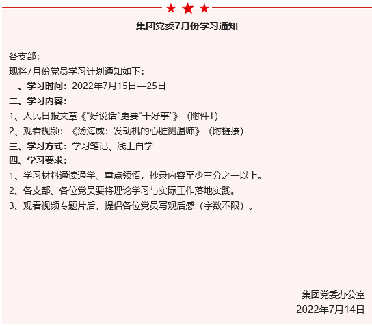 【通知】集團(tuán)黨委7月份學(xué)習(xí)通知
