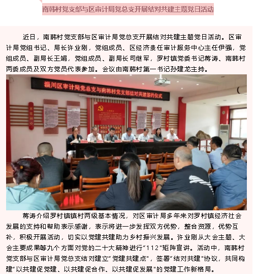 【黨建】南韓村黨支部與區(qū)審計(jì)局黨總支開展結(jié)對(duì)共建主題黨日活動(dòng)
