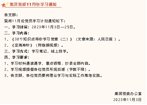 【通知】集團黨委11月份學習通知