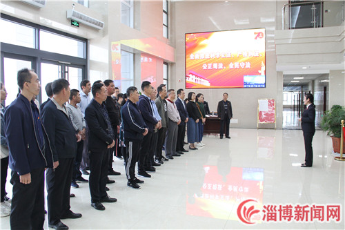 隨后,黨員們集體瞻仰了淄川烈士陵園、淄川革命歷史紀(jì)念館,聽取淄川革命歷史等相關(guān)情況介紹。在淄川革命歷史紀(jì)念館內(nèi),陳列著抗日戰(zhàn)爭、解放戰(zhàn)爭等各個時期無數(shù)革命英烈浴血奮戰(zhàn)的英雄事跡。一件件珍貴的史料、一個個動人的故事、一幕幕感人的畫面,給黨員們上了一堂生動的黨課。在黨性教育中心,黨員們集體觀看了紅色電影《建黨偉業(yè)》,回顧中國共產(chǎn)黨成立的艱難歷程,重溫光輝黨史。觀影結(jié)束后,黨員們齊聲高唱了《沒有共產(chǎn)黨就沒有新中國》。