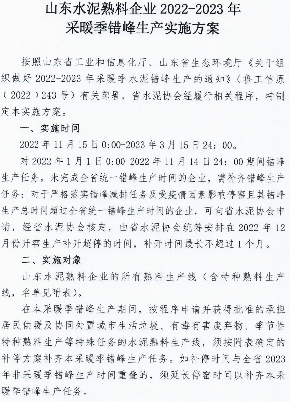 【轉(zhuǎn)載】山東:2022-2023年冬春季全省水泥熟料企業(yè)共錯峰生產(chǎn)120天