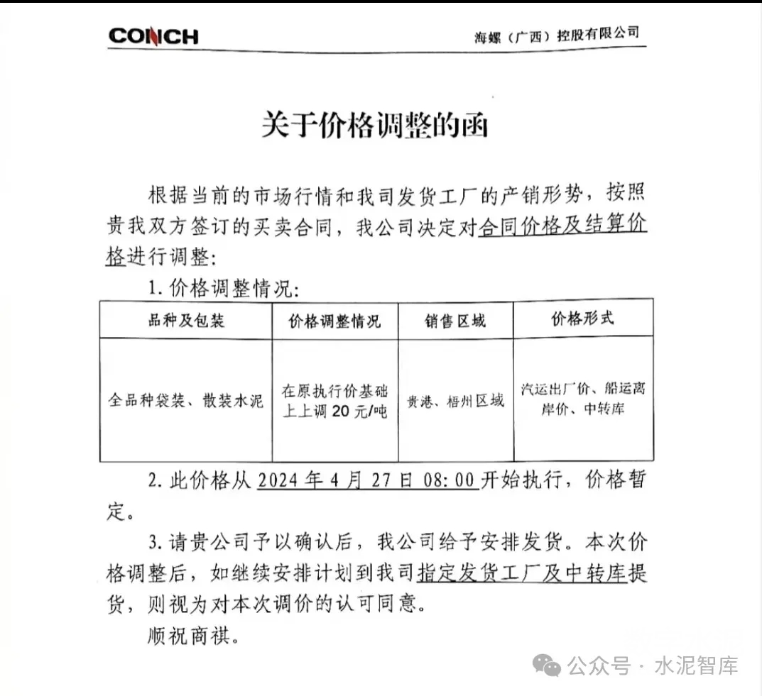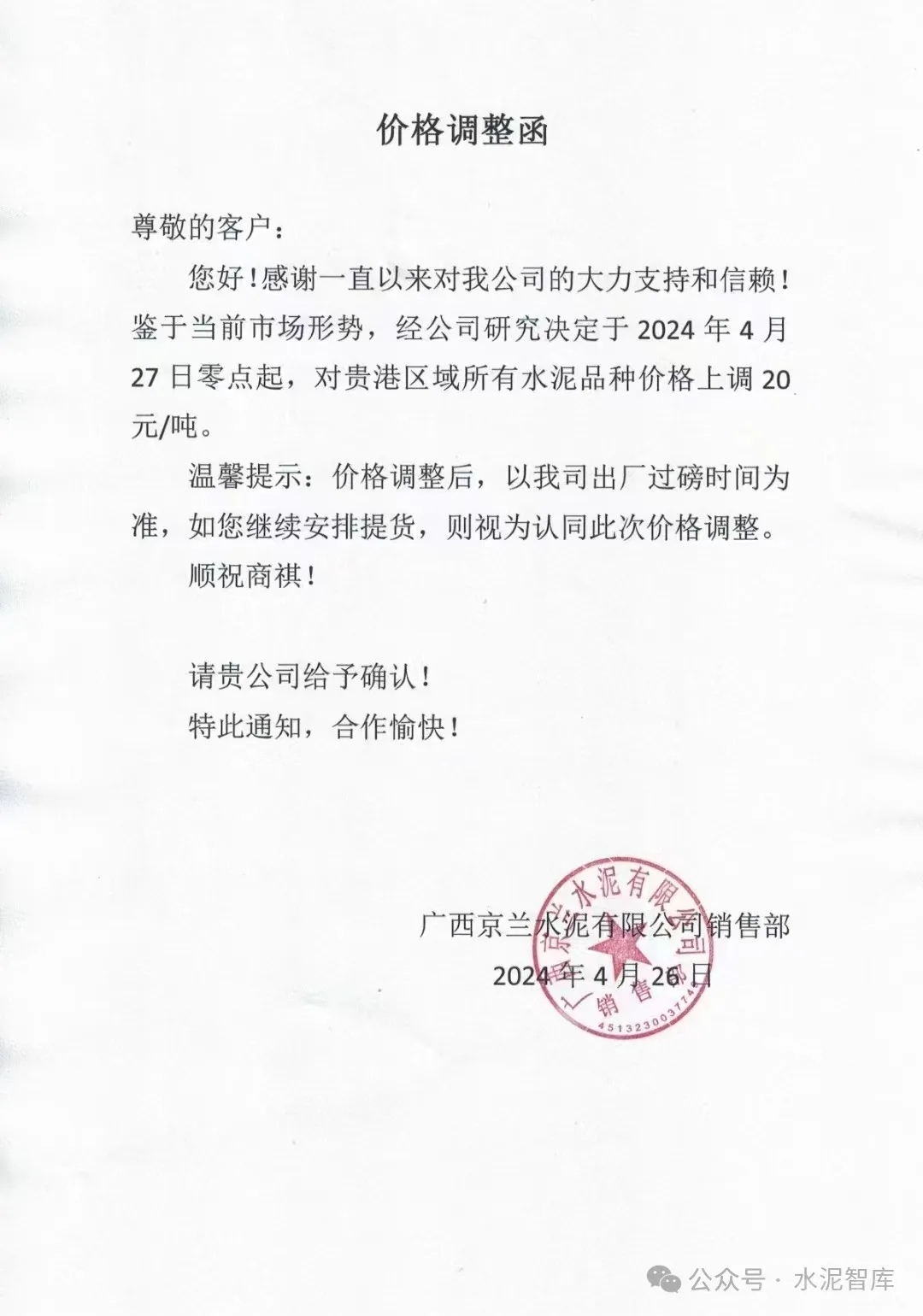 長(zhǎng)江沿線地區(qū)水泥價(jià)格于4月中旬小幅恢復(fù)性上調(diào)后,4月24日,東北地區(qū)因虧損嚴(yán)重,企業(yè)經(jīng)營(yíng)困難,發(fā)布大幅上漲消息,通知上調(diào)20-60元/噸。