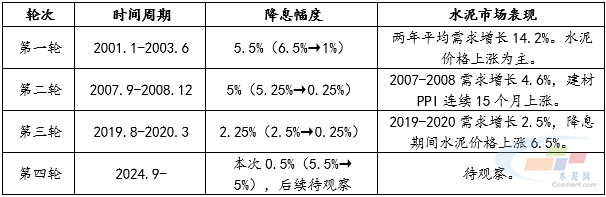 表1:2001年以來(lái)美聯(lián)儲(chǔ)歷次降息與水泥市場(chǎng)表現(xiàn)