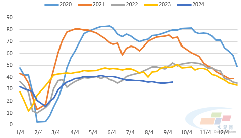 今年以來(lái),受地產(chǎn)持續(xù)探底和基建資金不足等影響,水泥需求低迷態(tài)勢(shì)基本貫穿前三季度。中國(guó)水泥網(wǎng)水泥大數(shù)據(jù)顯示,截至當(dāng)前,水泥發(fā)運(yùn)率在36%左右,需求恢復(fù)不足四成,遠(yuǎn)遜于同期。一方面,美聯(lián)儲(chǔ)降息,人民幣匯率升值,有利于減輕部分發(fā)行較多美元債的地產(chǎn)企業(yè)債務(wù)壓力,修復(fù)資產(chǎn)負(fù)債表;另一方面,貨幣政策空間打開(kāi)后,市場(chǎng)利率下降,流動(dòng)性增加,緩解部分基建項(xiàng)目資金壓力,短期需求有望轉(zhuǎn)暖。不同的是,前三輪降息周期中我國(guó)水泥需求處于上升期和高位平臺(tái)期,目前處于下行通道,長(zhǎng)期來(lái)看需求下滑不可逆轉(zhuǎn)。