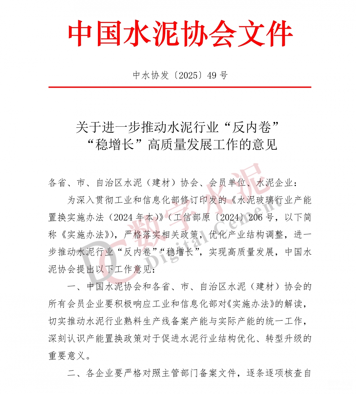 【轉(zhuǎn)載】中國水泥協(xié)會:關(guān)于進(jìn)一步推動水泥行業(yè)“反內(nèi)卷”“穩(wěn)增長”高質(zhì)量發(fā)展工作的意見