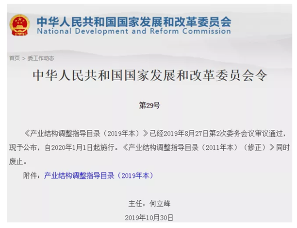 據(jù)中國水泥網(wǎng)從國家發(fā)改委獲悉,《產(chǎn)業(yè)結(jié)構(gòu)調(diào)整指導(dǎo)目錄(2019年本)》(以下簡稱:《目錄(2019年本)》)已經(jīng)2019年8月27日第2次委務(wù)會議審議通過,現(xiàn)予公布,自2020年1月1日起施行?!懂a(chǎn)業(yè)結(jié)構(gòu)調(diào)整指導(dǎo)目錄(2011年本)(修正)》同時廢止。