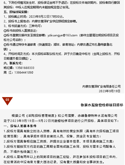 【招標(biāo)公告】魯中水泥煙煤、螢澤礦業(yè)物料運(yùn)輸、魯蒙水泥旋窯檢修項(xiàng)目招標(biāo)