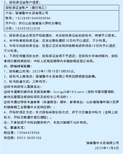 【招標(biāo)公告】魯中水泥