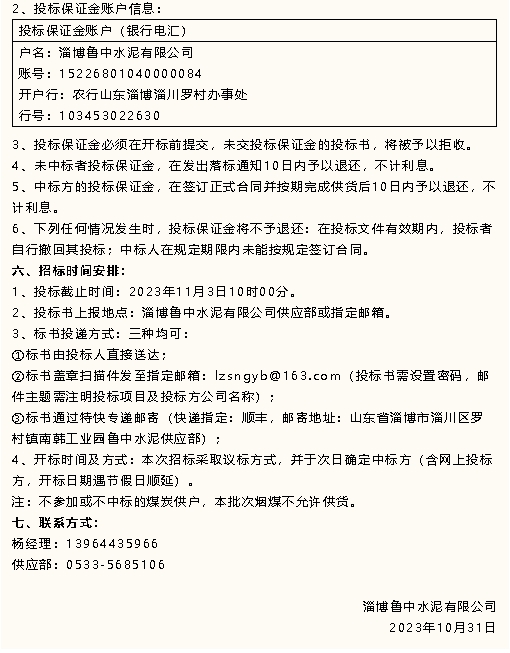 【招標(biāo)公告】魯中水泥