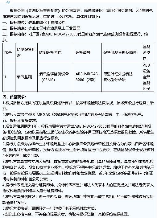【招標(biāo)公告】鵬峰化工