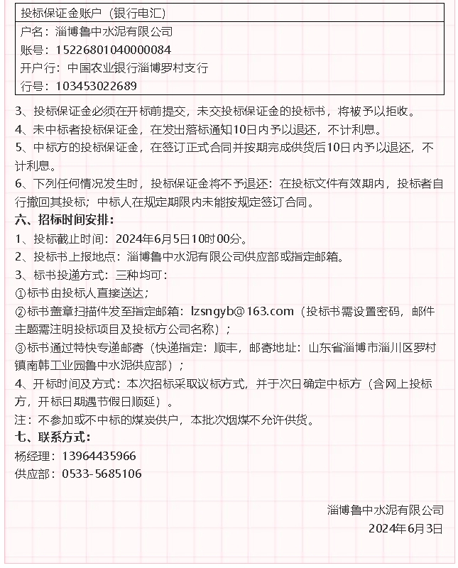 【招標(biāo)公告】魯中水泥煙煤,魯蒙水泥氟石膏運(yùn)輸、氨水招標(biāo)