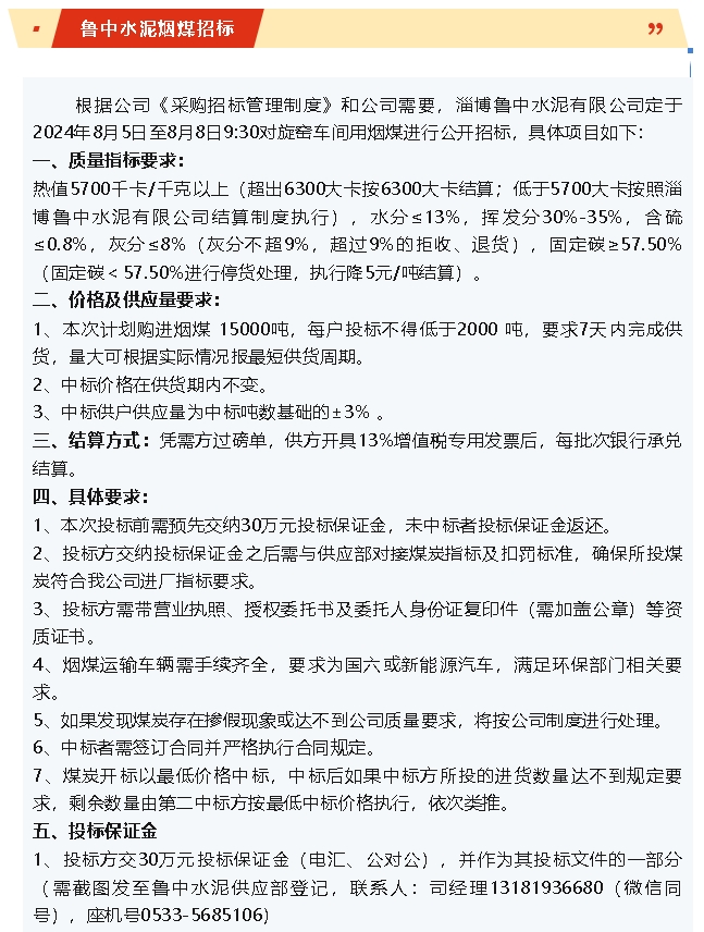 【招標公告】魯中水泥煙煤、重山思沃瑞消防報警系統(tǒng)改造項目招標