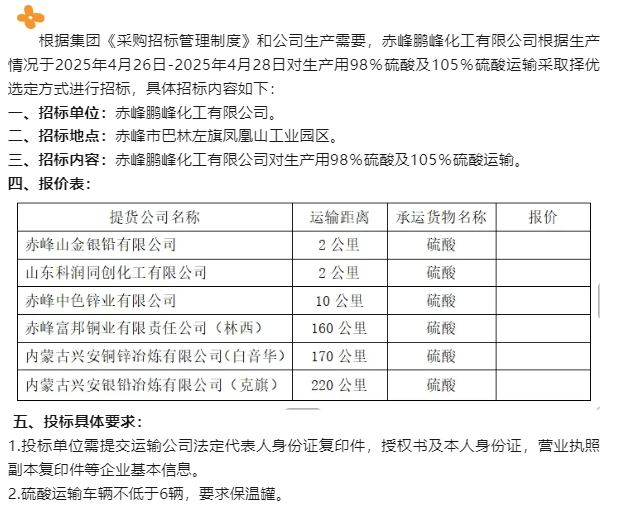 【招標(biāo)公告】鵬峰化工
