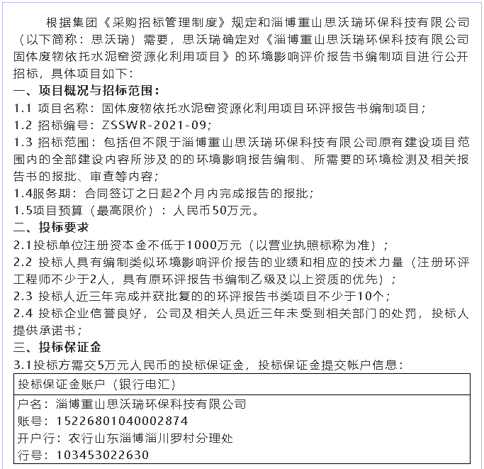 【招標(biāo)公告】重山思沃瑞