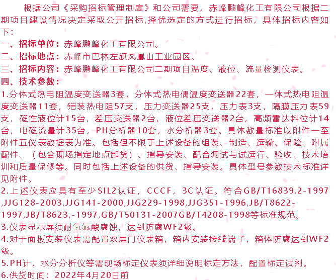 下一篇:【招標公告】鵬峰化工稱重儀表、柴油發(fā)電機、干式變壓器招標