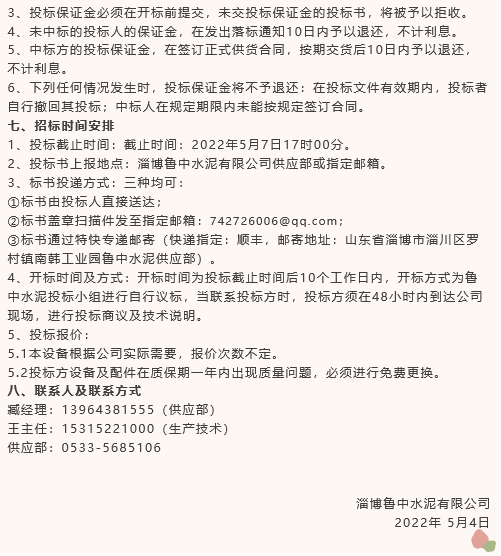 【招標公告】魯中水泥