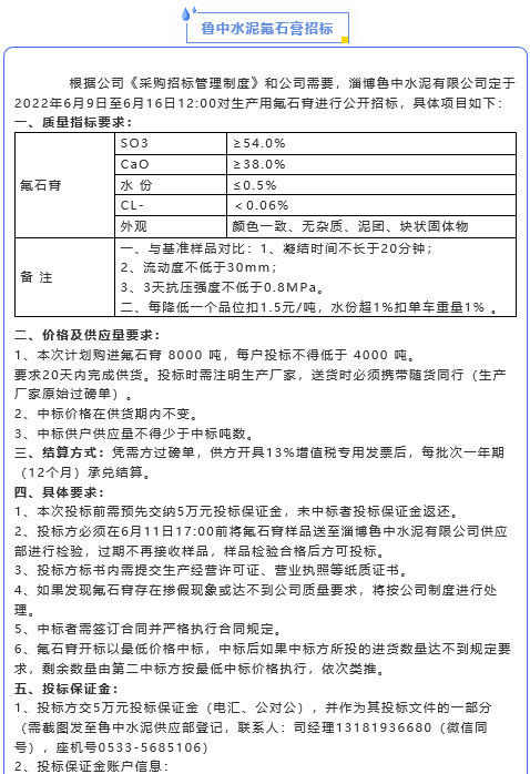 【招標(biāo)公告】魯中水泥氟石膏、物料運輸招標(biāo)