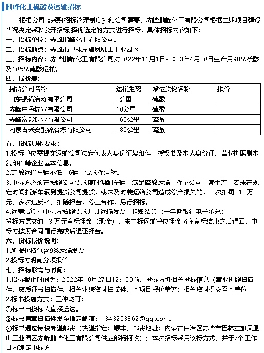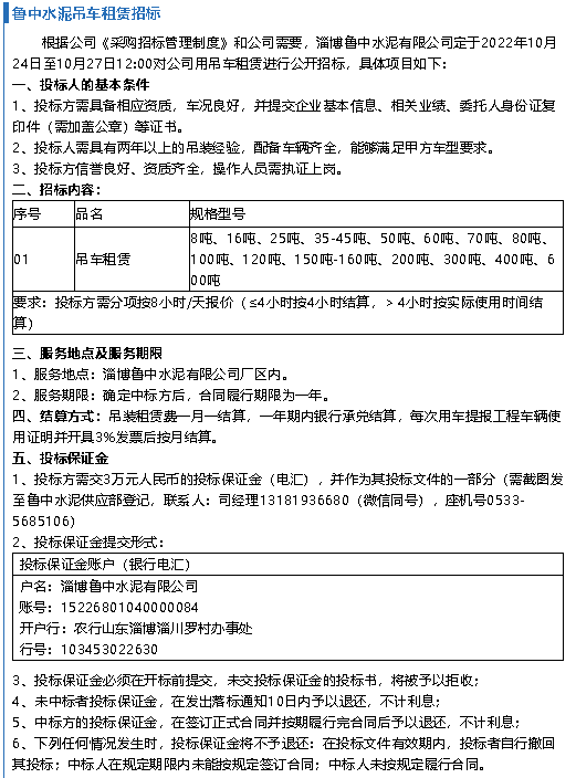 【招標公告】魯中水泥、鵬峰化工